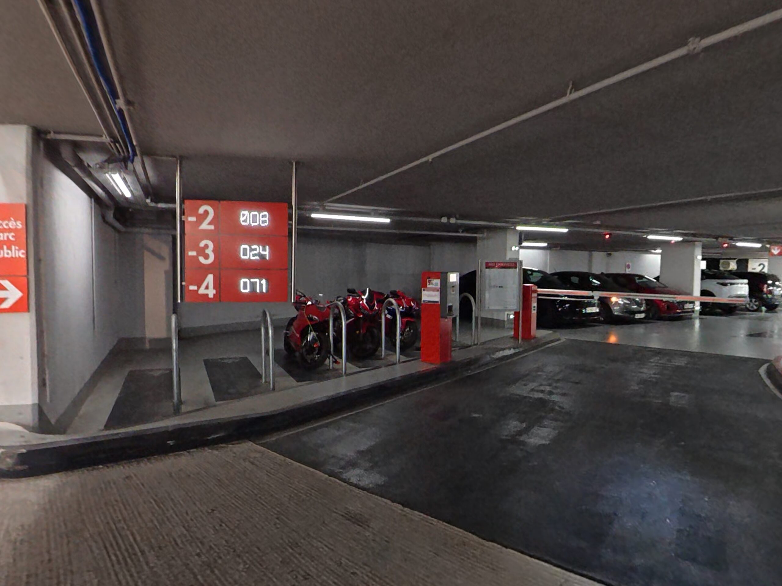 Indigo | 14 places (dont 2 cargos) | Élevé (Badge, vidéosurveillance, point fixe) | Dès 6,67 € | Zone de gonflage et outillage | La sortie par l’ascenseur donne sur une place où il est interdit de circuler à vélo. |